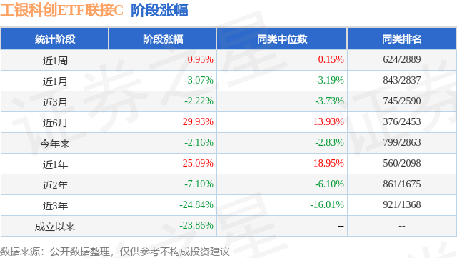 从业绩表现来看,工银科创ETF联接C基金过去一年净值涨幅为25.09%,在同类基金中排名560/2098,同类基金过去一年净值涨幅中位数为18.95%。而基金过去一年的最大回撤为-21.12%,成立以来的最大回撤为-57.76%。