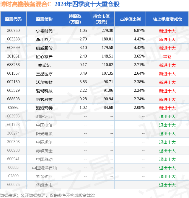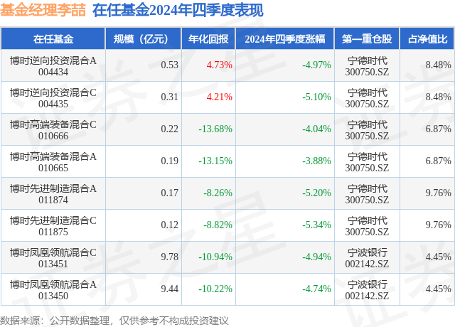 证券之星消息,日前博时高端装备混合C基金公布四季报,2024年四季度最新规模0.22亿元,季度净值涨幅为-4.04%。