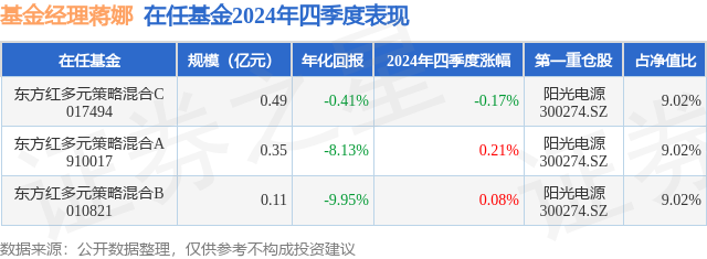 证券之星消息,日前东方红多元策略混合B基金公布四季报,2024年四季度最新规模0.11亿元,季度净值涨幅为0.08%。