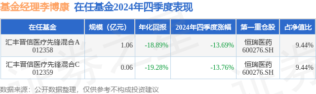 证券之星消息,日前汇丰晋信医疗先锋混合A基金公布四季报,2024年四季度最新规模1.06亿元,季度净值涨幅为-13.69%。