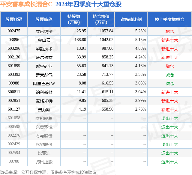 证券之星消息,日前平安睿享成长混合C基金公布四季报,2024年四季度最新规模0.62亿元,季度净值涨幅为7.59%。