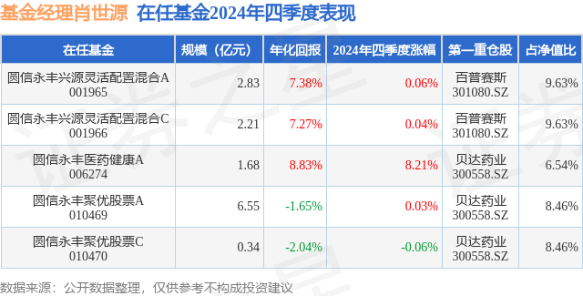 证券之星消息,日前圆信永丰聚优股票C基金公布四季报,2024年四季度最新规模0.34亿元,季度净值涨幅为-0.06%。