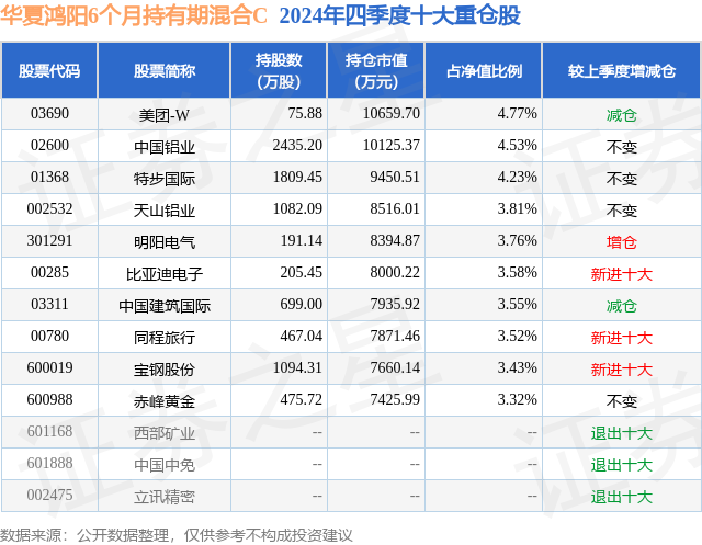 证券之星消息,日前华夏鸿阳6个月持有期混合C基金公布四季报,2024年四季度最新规模2.49亿元,季度净值涨幅为-4.29%。