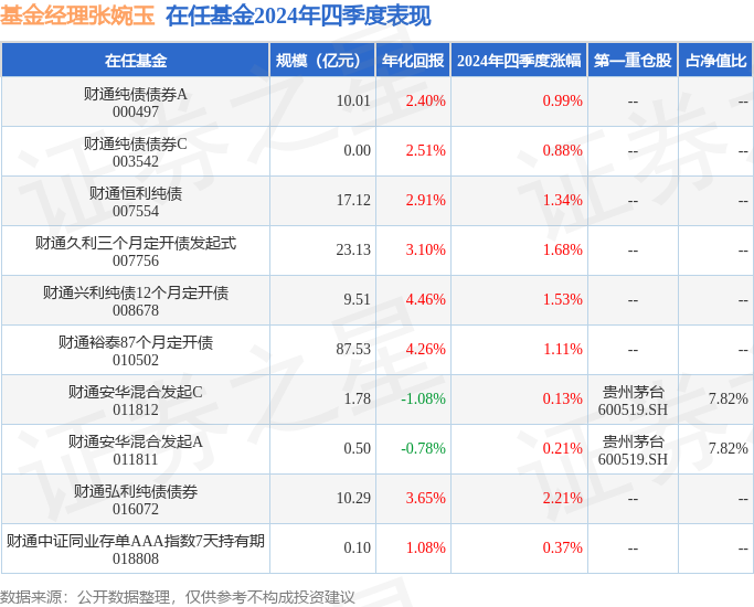 财通安华混合发起A现任基金经理为张婉玉 匡恒。其中在任基金经理张婉玉已从业4年又258天,2022年7月8日正式接手管理财通安华混合发起A,任职期间累计回报为0.88%。目前还管理着10只基金产品(包括A类和C类),其中本季度表现最佳的基金为财通弘利纯债债券(016072),季度净值涨幅为2.21%。