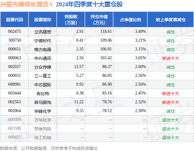 证券之星消息,日前兴银先锋成长混合A基金公布四季报,2024年四季度最新规模0.21亿元,季度净值涨幅为4.29%。