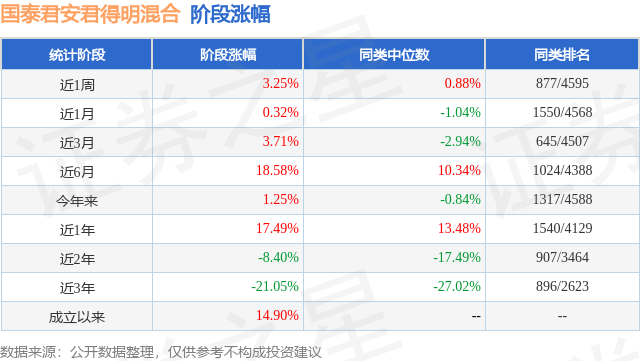 从业绩表现来看,国泰君安君得明混合基金过去一年净值涨幅为17.49%,在同类基金中排名1540/4129,同类基金过去一年净值涨幅中位数为13.48%。而基金过去一年的最大回撤为-16.01%,成立以来的最大回撤为-45.85%。