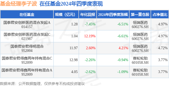 国泰君安君得明混合现任基金经理为李子波 陈思靖。其中在任基金经理李子波已从业3年又33天,2022年3月22日正式接手管理国泰君安君得明混合,任职期间累计回报为-7.16%。目前还管理着5只基金产品(包括A类和C类),其中本季度表现最佳的基金为国泰君安君得明混合(952004),季度净值涨幅为4.21%。