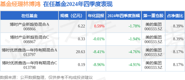 证券之星消息,日前博时产业新趋势混合C基金公布四季报,2024年四季度最新规模0.33亿元,季度净值涨幅为-1.94%。