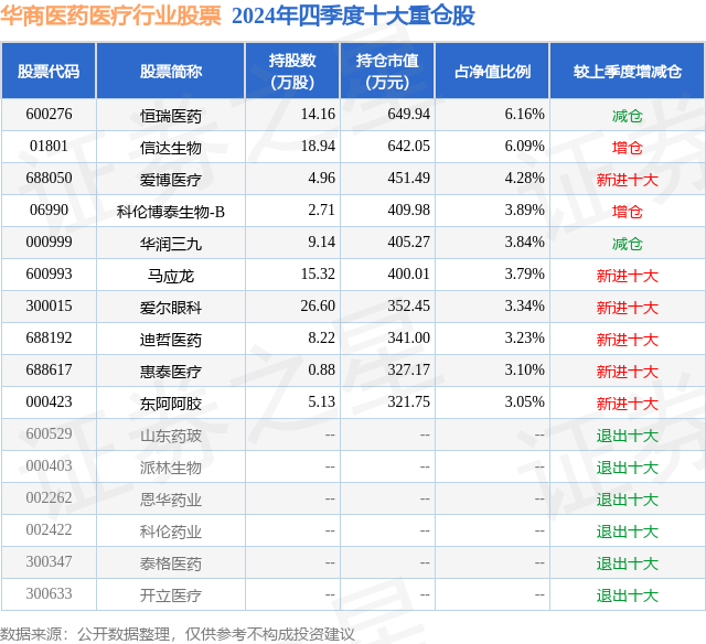 证券之星消息,日前华商医药医疗行业股票基金公布四季报,2024年四季度最新规模1.06亿元,季度净值涨幅为-10.09%。