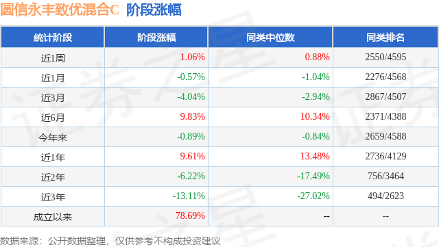从业绩表现来看,圆信永丰致优混合C基金过去一年净值涨幅为9.61%,在同类基金中排名2736/4129,同类基金过去一年净值涨幅中位数为13.48%。而基金过去一年的最大回撤为-16.44%,成立以来的最大回撤为-31.17%。