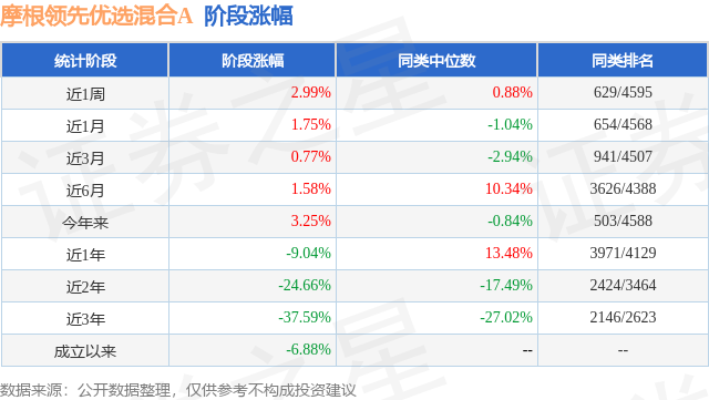 从业绩表现来看,摩根领先优选混合A基金过去一年净值涨幅为-9.04%,在同类基金中排名3971/4129,同类基金过去一年净值涨幅中位数为13.48%。而基金过去一年的最大回撤为-35.82%,成立以来的最大回撤为-64.27%。