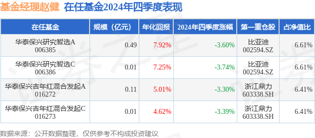 证券之星消息,日前华泰保兴研究智选C基金公布四季报,2024年四季度最新规模0.01亿元,季度净值涨幅为-3.74%。