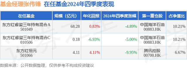 证券之星消息,日前东方红恒元基金公布四季报,2024年四季度最新规模4.11亿元,季度净值涨幅为-9.95%。