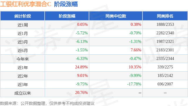 从业绩表现来看,工银红利优享混合C基金过去一年净值涨幅为24.89%,在同类基金中排名339/2275,同类基金过去一年净值涨幅中位数为10.35%。而基金过去一年的最大回撤为-15.48%,成立以来的最大回撤为-41.02%。