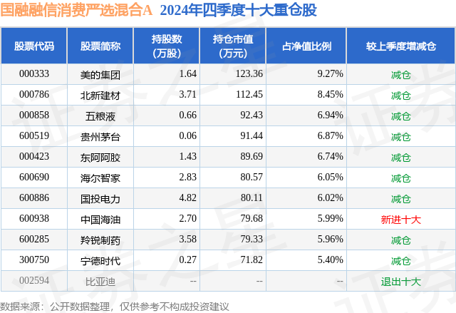 证券之星消息,日前国融融信消费严选混合A基金公布四季报,2024年四季度最新规模0.12亿元,季度净值涨幅为-7.97%。