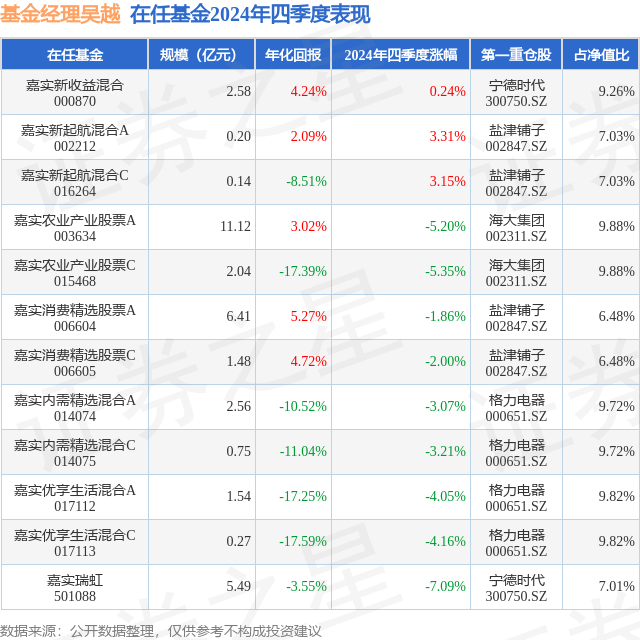 证券之星消息,日前嘉实消费精选股票A基金公布四季报,2024年四季度最新规模6.41亿元,季度净值涨幅为-1.86%。