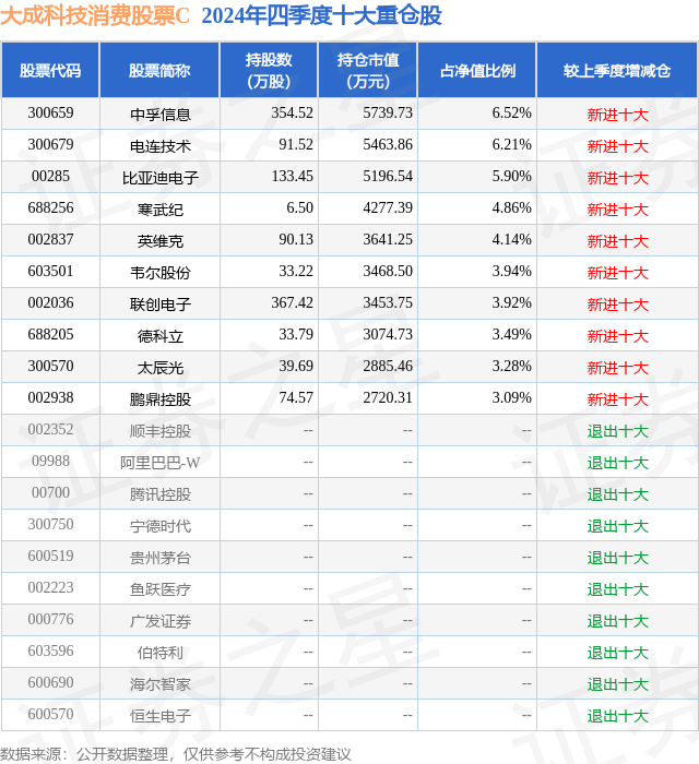 证券之星消息,日前大成科技消费股票C基金公布四季报,2024年四季度最新规模2.36亿元,季度净值涨幅为-7.73%。