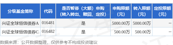 证券之星消息,2月5日兴证全球基金管理有限公司发布《关于兴证全球恒信债券型证券投资基金暂停接受大额申购(含定投)、大额转换转入申请的公告》。公告中提示,为了保证基金的平稳运作,保护基金持有人利益,自2025年2月5日起兴证全球恒信债券型证券投资基金暂停接受大额申购(含定投)、大额转换转入申请,下属分级基金调整明细如下: