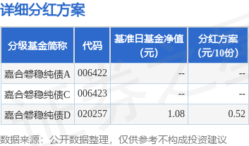 证券之星消息,2月25日发布《嘉合磐稳纯债债券型证券投资基金(D类份额)2025年度第一次分红公告》。本次分红为2025年度的第1次分红。公告显示,本次分红的收益分配基准日为2月2日,详细分红方案如下: