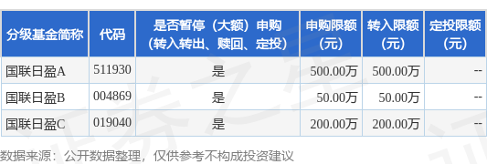 证券之星消息,3月1日国联基金管理有限公司发布《国联基金管理有限公司关于国联日日盈交易型货币市场基金调整大额申购、转换转入及定期定额投资业务的公告》。公告中提示,为保护基金份额持有人利益,保持基金的平稳运行,自2025年3月3日起国联基金管理有限公司关于国联日日盈交易型货币市场基金调整大额申购、转换转入及定期定额投资业务,下属分级基金调整明细如下: