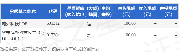 证券之星消息,3月6日华宝基金管理有限公司发布《华宝海外科技股票型证券投资基金(QDII-LOF)调整大额申购(含定投)金额上限的公告》。公告中提示,为保护基金份额持有人利益,自2025年3月6日起华宝海外科技股票型证券投资基金(QDII-LOF)调整大额申购(含定投)金额上限,申购上限金额为0.01万元,下属分级基金调整明细如下: