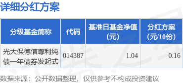 证券之星消息,3月7日发布《光大保德信尊利纯债一年定期开放债券型发起式证券投资基金分红公告》。本次分红为2025年度第1次分红。公告显示,本次分红的收益分配基准日为2月2日,详细分红方案如下: