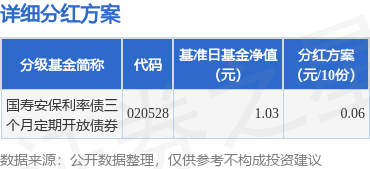 证券之星消息,3月14日发布《国寿安保利率债三个月定期开放债券型证券投资基金分红公告》。本次分红为2025年度的第1次分红。公告显示,本次分红的收益分配基准日为3月3日,详细分红方案如下: