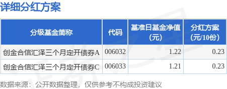 证券之星消息,3月18日发布《创金合信汇泽纯债三个月定期开放债券型证券投资基金分红公告》。本次分红为2025年度的第1次分红。公告显示,本次分红的收益分配基准日为3月3日,详细分红方案如下: