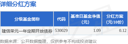 证券之星消息,3月19日发布《建信荣元一年定期开放债券型发起式证券投资基金分红公告》。本次分红为本基金2025年度的第一次分红。公告显示,本次分红的收益分配基准日为3月3日,详细分红方案如下: