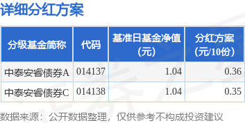 证券之星消息,3月19日发布《中泰安睿债券型证券投资基金分红公告》。本次分红为2025年度的第1次分红。公告显示,本次分红的收益分配基准日为3月3日,详细分红方案如下: