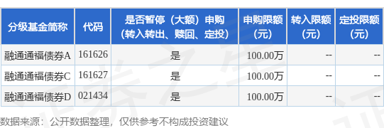 证券之星消息,3月20日融通基金管理有限公司发布《融通通福债券型证券投资基金(LOF)暂停大额申购业务的公告》。公告中提示,为保证本基金的稳定运作,保护现有基金份额持有人利益,自2025年3月20日起融通通福债券型证券投资基金(LOF)暂停大额申购业务,下属分级基金调整明细如下: