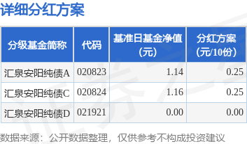 证券之星消息,3月20日发布《汇泉安阳纯债债券型证券投资基金分红公告》。本次分红为2025年度的第1次分红。公告显示,本次分红的收益分配基准日为3月3日,详细分红方案如下: