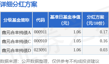证券之星消息,3月25日发布《鑫元合丰纯债债券型证券投资基金分红公告》。本次分红为2025年第1次分红。公告显示,本次分红的收益分配基准日为3月3日,详细分红方案如下: