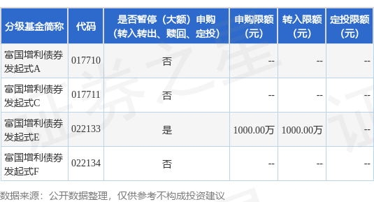 证券之星消息,4月3日富国基金管理有限公司发布《关于富国增利债券型发起式证券投资基金(E类份额)暂停大额申购、转换转入及定期定额投资业务的公告》。公告中提示,为了保证基金的平稳运作,保护基金持有人的利益,自2025年4月7日起富国增利债券型发起式证券投资基金(E类份额)暂停大额申购、转换转入及定期定额投资业务,下属分级基金调整明细如下: