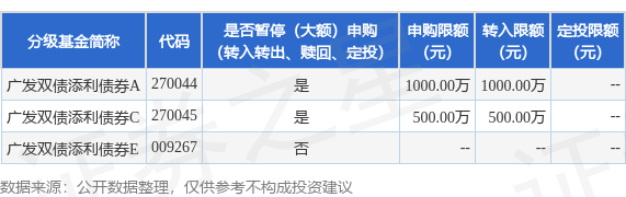 证券之星消息,4月14日广发基金管理有限公司发布《关于广发双债添利债券型证券投资基金A类和C类基金份额调整机构投资者大额申购(含转换转入、定期定额和不定额投资)业务限额的公告》。公告中提示,为满足投资者的投资需求,自2025年4月15日起广发双债添利债券型证券投资基金A类和C类基金份额调整机构投资者大额申购(含转换转入、定期定额和不定额投资)业务限额,下属分级基金调整明细如下: