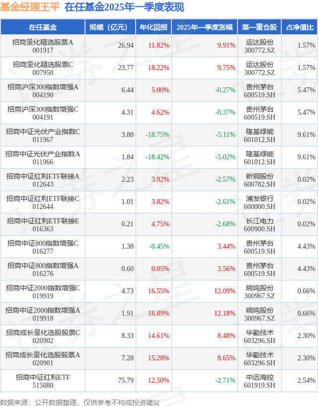 证券之星消息,日前招商中证红利ETF基金公布一季报,2025年一季度最新规模75.79亿元,季度净值涨幅为-2.71%。