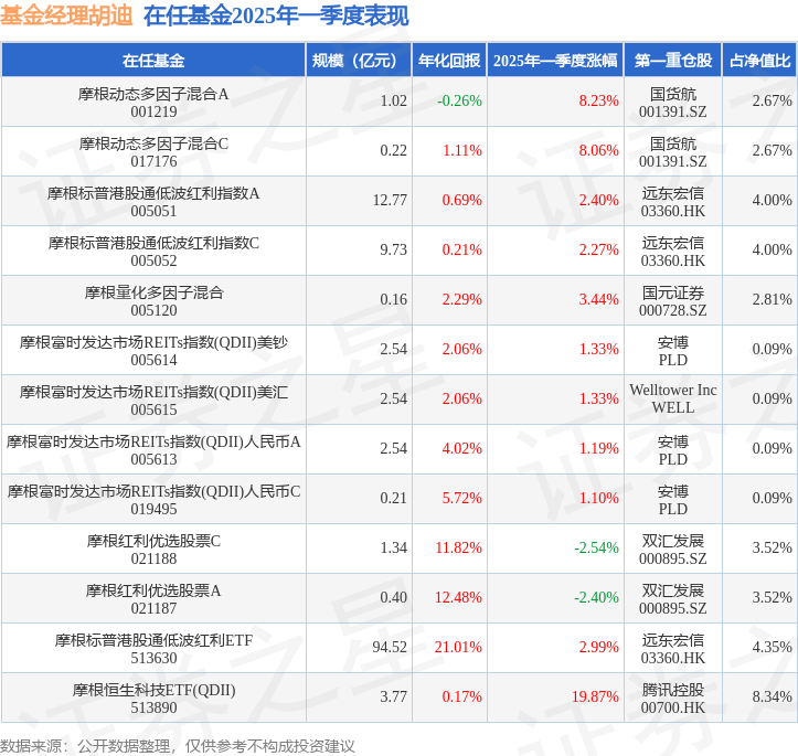 证券之星消息,日前摩根恒生科技ETF(QDII)基金公布一季报,2025年一季度最新规模3.77亿元,季度净值涨幅为19.87%。