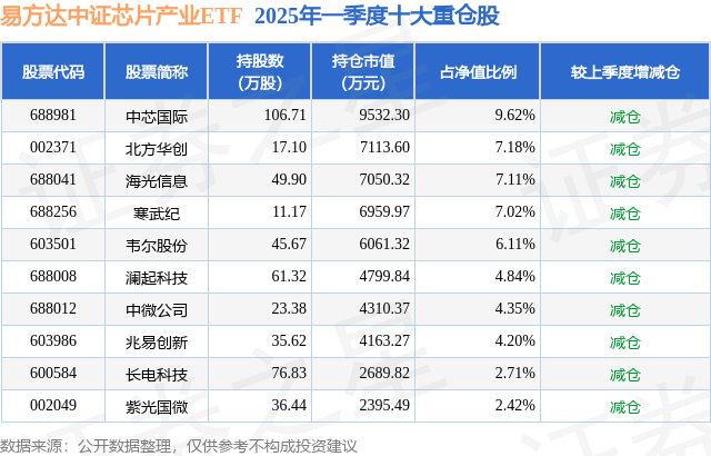 证券之星消息,日前易方达中证芯片产业ETF基金公布一季报,2025年一季度最新规模9.91亿元,季度净值涨幅为3.29%。