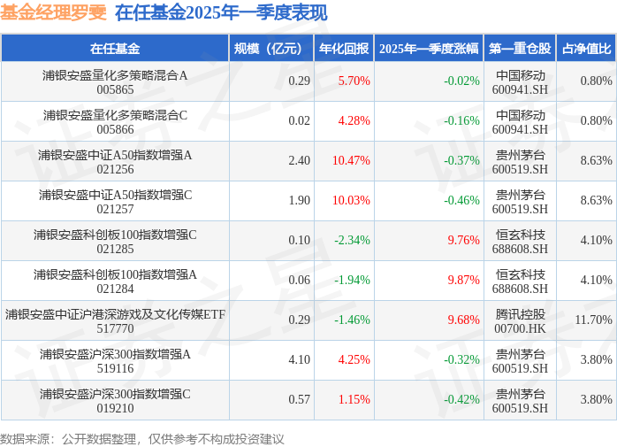 证券之星消息,日前浦银安盛中证沪港深游戏及文化传媒ETF基金公布一季报,2025年一季度最新规模0.29亿元,季度净值涨幅为9.68%。