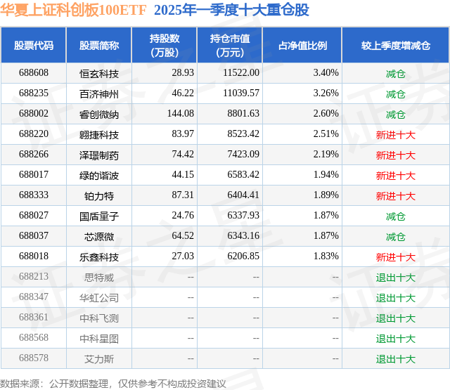 证券之星消息,日前华夏上证科创板100ETF基金公布一季报,2025年一季度最新规模33.9亿元,季度净值涨幅为10.89%。