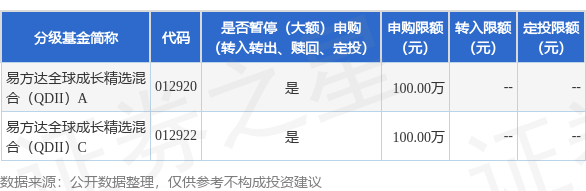 注:(1) 本次暂停相关业务针对易方达全球成长精选混合型证券投资基金(QDII)(以下简称“本基金”)所有基金份额类别(A类人民币份额基金代码为012920,A类美元现汇份额基金代码为012921,C类人民币份额基金代码为012922,C类美元现汇份额基金代码为012923)。