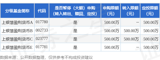 注:上银慧盈利货币A(交易代码:017780)以下简称“A类基金份额”,上银慧盈利货币B(交易代码:002733)以下简称“B类基金份额”,上银慧盈利货币C(交易代码:023777)以下简称“C类基金份额”,上银慧盈利货币E(交易代码:017781)以下简称“E类基金份额”。