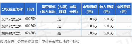 证券之星消息,9月3日东兴基金管理有限公司发布《东兴安盈宝货币市场基金调整代销机构的机构投资者大额申购(含定期定额投资及转换转入)业务的公告》。公告中提示,为保护现有基金份额持有人利益,自2025年9月4日起东兴安盈宝货币市场基金调整代销机构的机构投资者大额申购(含定期定额投资及转换转入)业务,下属分级基金调整明细如下: