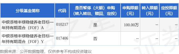 证券之星消息,10月16日中银基金管理有限公司发布《关于中银添禧丰禄稳健养老目标一年持有期混合型基金中基金(FOF)暂停机构投资者大额申购及定期定额投资业务的公告》。公告中提示,None,自2025年10月16日起中银添禧丰禄稳健养老目标一年持有期混合型基金中基金(FOF)暂停机构投资者大额申购及定期定额投资业务,下属分级基金调整明细如下: