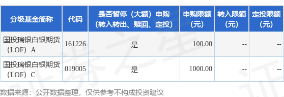 证券之星消息,10月18日国投瑞银基金管理有限公司发布《国投瑞银白银期货证券投资基金(LOF)调整大额申购(含定期定额投资)业务公告》。公告中提示,为保护基金份额持有人利益,自2025年10月20日起国投瑞银白银期货证券投资基金(LOF)调整大额申购(含定期定额投资)业务,下属分级基金调整明细如下:
