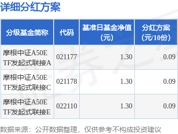 证券之星消息,10月18日发布《摩根中证A50交易型开放式指数证券投资基金发起式联接基金分红公告》。本次分红为2025年度的第1次分红。公告显示,本次分红的收益分配基准日为9月9日,详细分红方案如下: