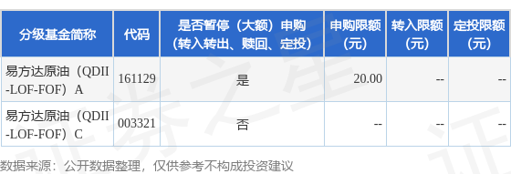 注:(1)易方达原油证券投资基金(QDII)(以下简称“本基金”)A类人民币份额场内简称为原油LOF易方达。本次调整大额申购业务限制仅针对本基金A类人民币份额(基金代码:161129),本基金C类人民币份额(基金代码:003321)、A类美元份额(基金代码:003322)、C类美元份额(基金代码:003323)仍暂停申购及定期定额投资业务。
