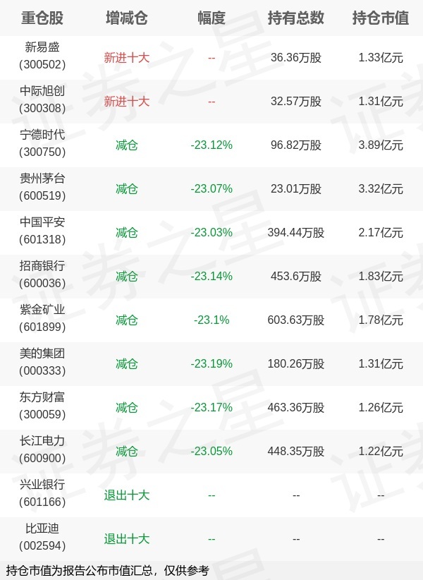 证券之星消息,10月28日天弘基金旗下陈瑶管理的天弘沪深300交易型开放式指数基金公布三季报,近1年净值增长率21.9%。与上一季度相比,该基金前十大重仓股新增新易盛,中际旭创;其中宁德时代持仓占比4.25%,为该基金第一大重仓股;兴业银行,比亚迪等退出前十大重仓股;详细数据如下: