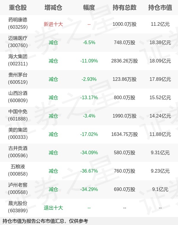 证券之星消息,10月28日景顺长城基金旗下刘彦春管理的景顺长城新兴成长混合型基金公布三季报,近1年净值增长率-2.44%。与上一季度相比,该基金前十大重仓股新增药明康德;其中迈瑞医疗持仓占比10.08%,为该基金第一大重仓股;晨光股份等退出前十大重仓股;详细数据如下: