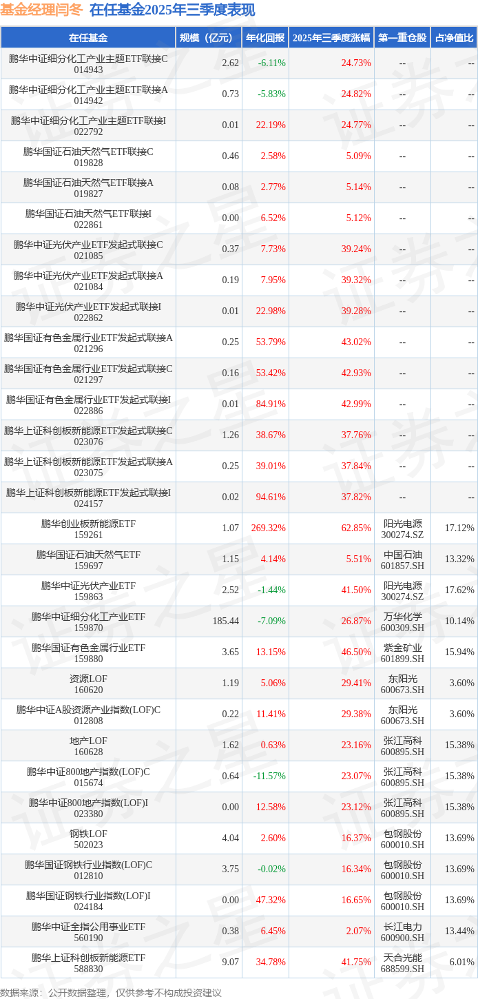 从基金规模来看,鹏华上证科创板新能源ETF基金2025年三季度公布的基金规模为9.07亿元,较上一期规模4.65亿元变化了4.43亿元,环比变化了95.34%。该基金最新一期资产配置为:股票占净值比99.47%,无债券类资产,现金占净值比0.6%。从基金持仓来看,该基金当季前十大股票仓位达47.28%,第一大重仓股为天合光能(688599),持仓占比为6.01%。